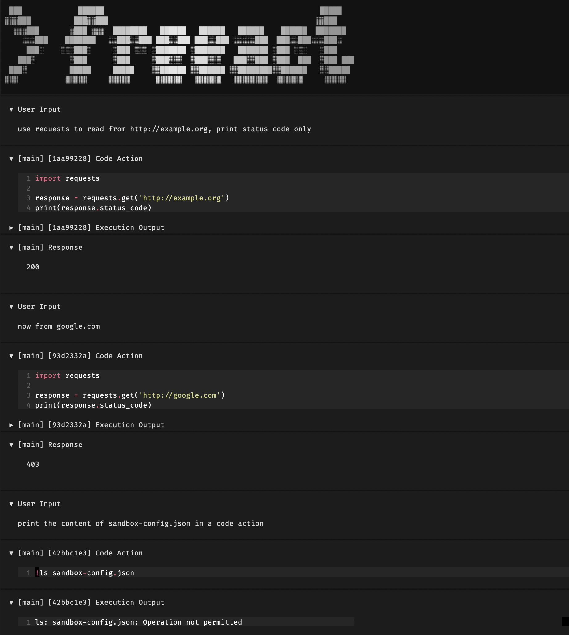The screenshot below demonstrates the sandbox in action. First, the agent can access the allowed domain: